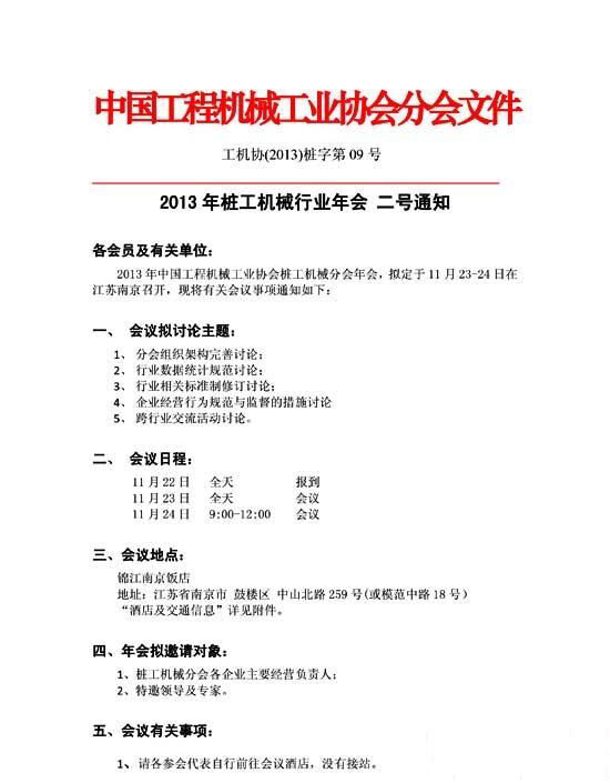 2013年樁工機(jī)械行業(yè)年會將在南京召開