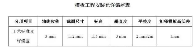 模板要求內(nèi)平面平整,接縫嚴(yán)密,防止漏漿,模板安裝的允許偏差詳見(jiàn)下表: