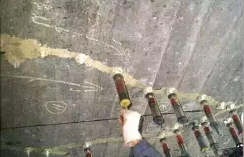 ① 由于混凝土攪拌運輸時間過長,澆筑速度過快,振搗不實、施工縫做法不當(dāng)、模板走動等原因形成裂縫,可以采用一般混凝土裂縫補強措施或者充填混凝土材料、鋼錨栓加固、甚至粘鋼板加固、預(yù)應(yīng)力加固等辦法補救。