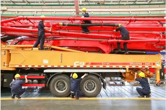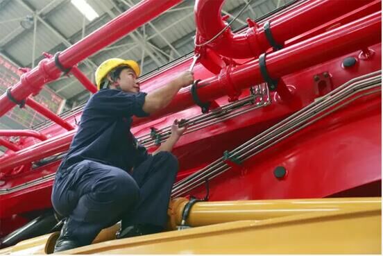 由于泵車生產(chǎn)線是高度柔性化的生產(chǎn),產(chǎn)品型號有37米、49米、56米、66米、86米等幾十種型號,還要滿足客戶的各種定制化需求,這就要求工人們在熟練掌握每一款產(chǎn)品的標(biāo)準(zhǔn)化作業(yè)同時,牢記每一顆螺母、每一根膠管、每一個閥塊的正確安裝方法,對泵車制造工藝做到了然于心,用最快的速度保證每一臺泵車的順利下線。