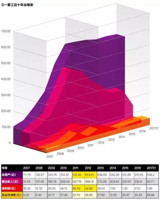 顯然,彼時(shí)三一的主營業(yè)務(wù)利潤持續(xù)大跌,倒逼著三一不得不做出改變。三一重工的財(cái)報(bào)顯示,2015年和2016年是該公司近十年來業(yè)績最差的年份,凈利潤分別為1.39億元和2.03億元。