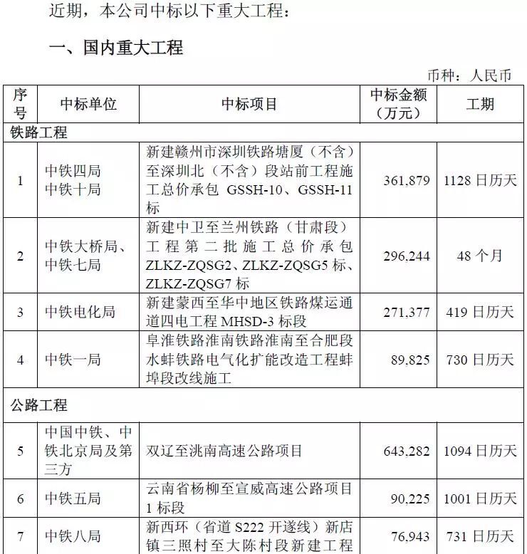 452億元!中國中鐵重大工程中標(biāo)公告