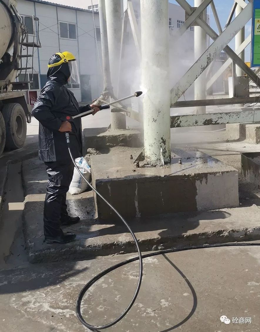 在楊技術員給站上工作人員進行初步講解指導后,首先對兩年沒有清理過的水泥倉支腿下方累積的混凝土進行了處理。那么,效果究竟怎么樣呢?具體視頻關注“砼商網(wǎng)”公眾號,回復“高壓清洗機”即可獲得技術員正準備打攪拌機主樓容易噴濺混凝土的地方時該攪拌站站長說道,這可得有兩年沒清理過的混凝土結塊,十幾公分厚呀!你們這高壓清洗機能打掉嗎?這是混凝土??!這么長時間了,還這么厚,打不下去怎么辦?正在小編心里打鼓的時候,楊技術員說道,沒問題,放心吧!