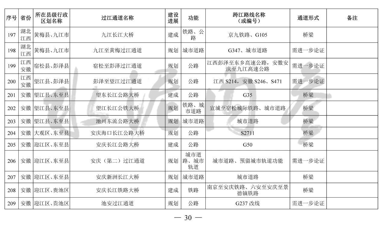 ??四、本《規(guī)劃》主要布局橫跨長江干線主要航道、具有交通功能的過江通道項(xiàng)目,對于連接洲島與沿岸、洲島之間的通道項(xiàng)目和不具備交通功能的跨江、沿江建筑物,由省級發(fā)展改革委統(tǒng)籌布局編制相關(guān)規(guī)劃報送我委銜接后組織實(shí)施。