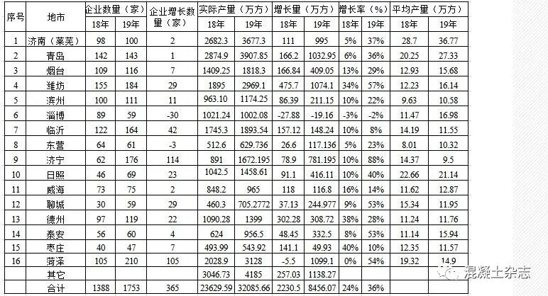 山東省2019年預(yù)拌混凝土生產(chǎn)企業(yè)及產(chǎn)量統(tǒng)計