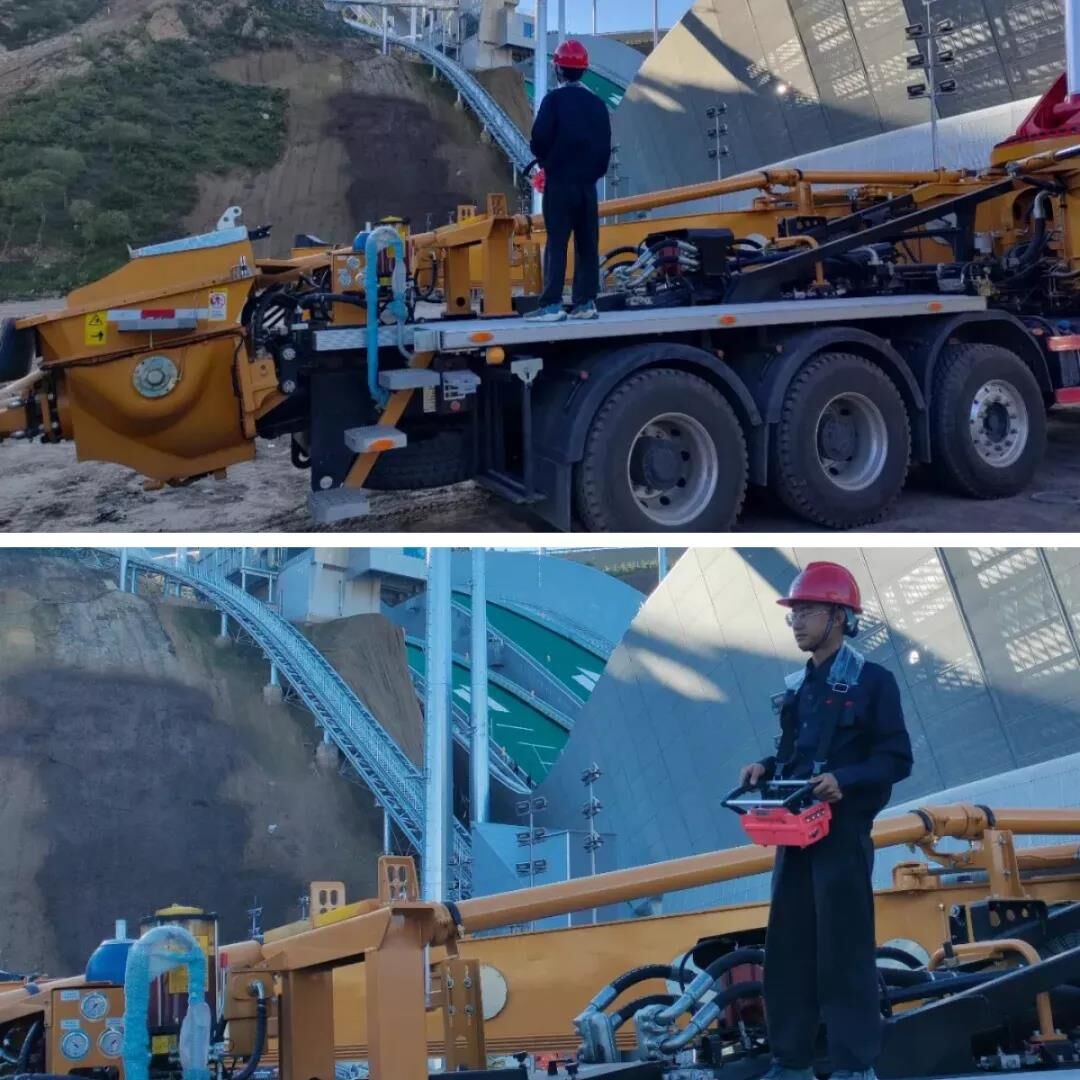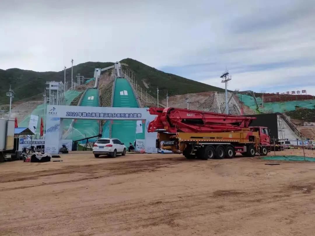 ▲三一泵車(chē)在淶源國(guó)家跳臺(tái)滑雪訓(xùn)練科研基地協(xié)助拍攝