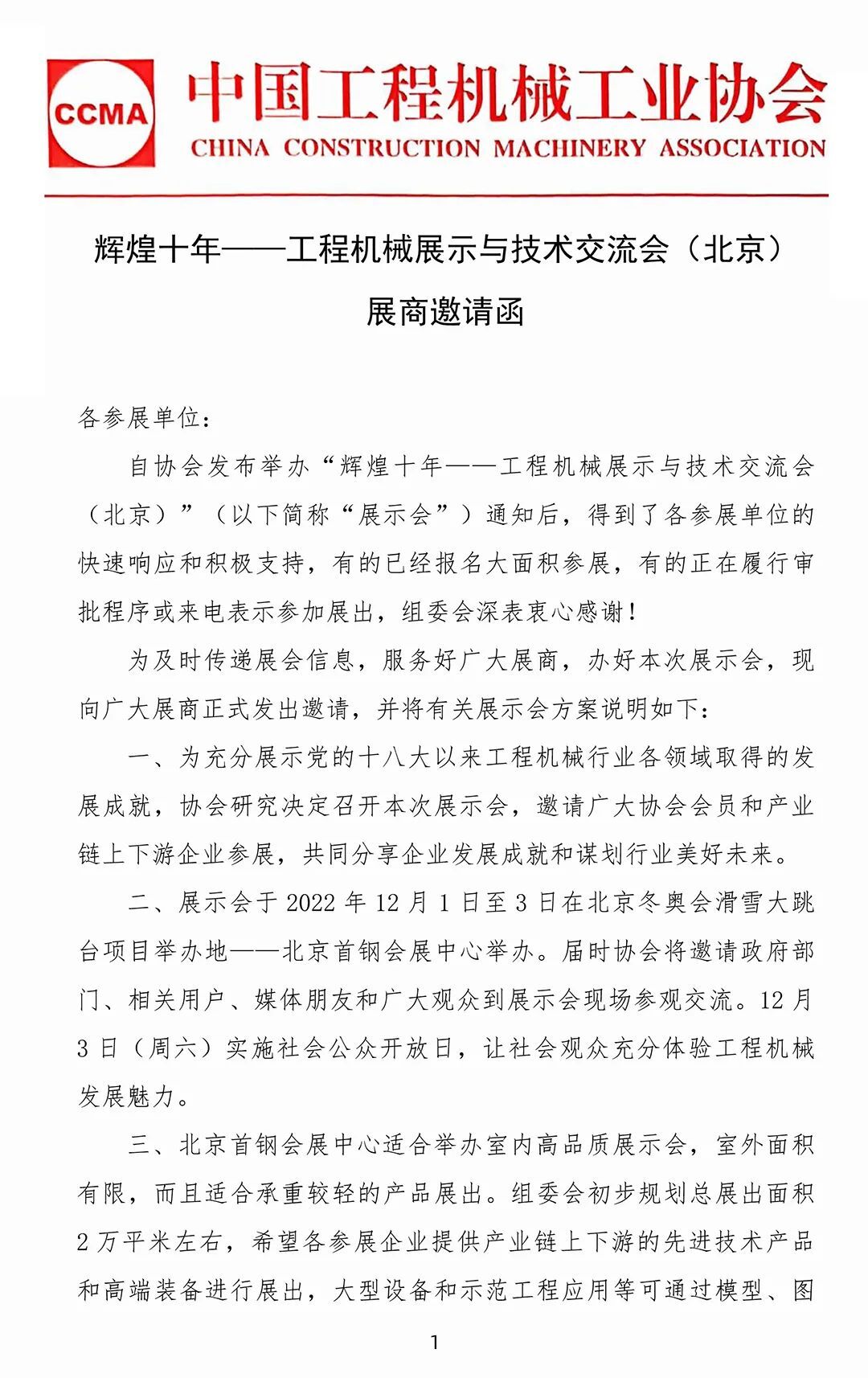 展商邀請(qǐng)函:輝煌十年——工程機(jī)械展示與技術(shù)交流會(huì)(北京)