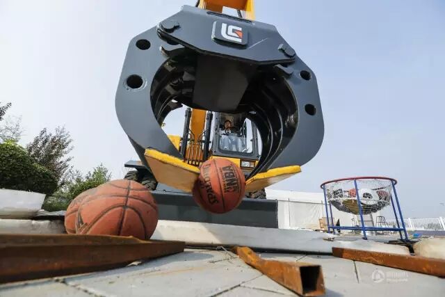 丁旭打開車門,坐進挖掘機艙內(nèi),將地上的籃球一個個用吊臂抓取,進行遠距離投籃。為了方便直視籃筐,她將眼前的玻璃窗也卸掉了。她每天都會像這樣頂著烈日在戶外練習(xí)一整天。