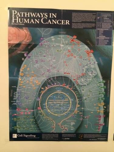 這是我老婆貼在家里的一張海報(bào),里面的每一個(gè)箭頭、每一根線都是好幾篇或者好幾十篇論文,很多都是 CNS,甚至有一些是諾貝爾獎(jiǎng)得主的成果。這是一個(gè)很直觀的科學(xué)的圖形化表述,一門科學(xué)就是由這些千千萬萬的點(diǎn)點(diǎn)滴滴組成的。