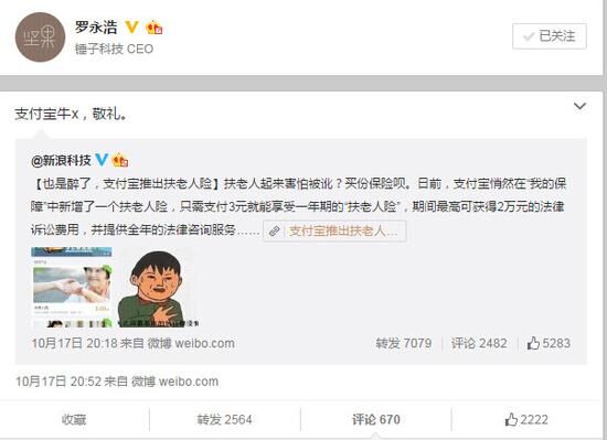 “扶老人險”一上線立即引起了網(wǎng)友們的熱議,就連羅永浩老師也在微博上公開力挺,而據(jù)支付寶方面的統(tǒng)計(jì),該險種開售3天便有2.6萬人投保,可見其關(guān)注度。