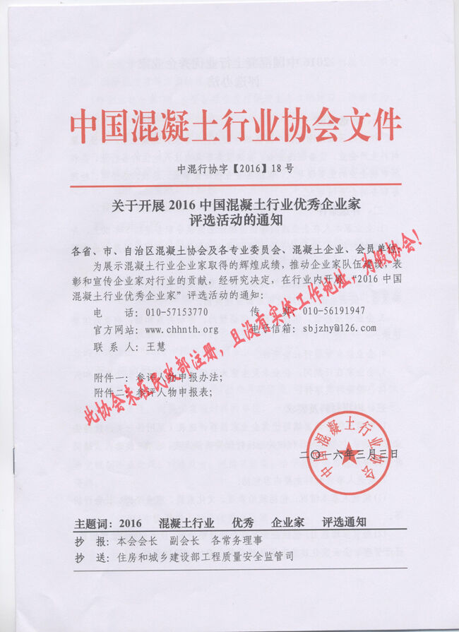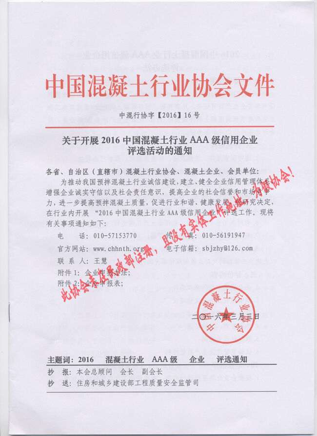 近日,有多家省市協(xié)會和有關生產(chǎn)企業(yè)向分會秘書處反映收到“中國混凝土行業(yè)協(xié)會”2016(16、17、18、19、20)文件開展所謂的“中國混凝土行業(yè)評選活動”的通知。