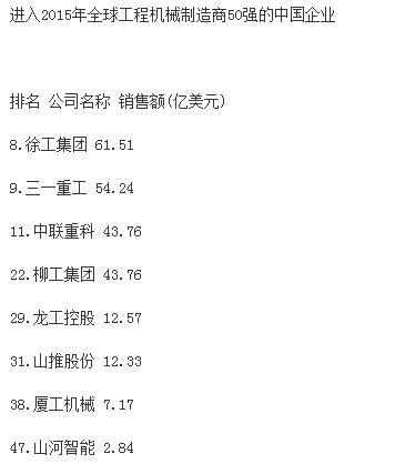 分析指出,受大宗商品價格下跌、新型經(jīng)濟體經(jīng)濟增速減緩和世界經(jīng)濟不景氣的影響,全球前50家工程機械制造企業(yè)總產(chǎn)值較上一年度下跌16.2%,達到1330億美元,創(chuàng)2009年以來新低。據(jù)中國工程機械商貿網(wǎng)編輯了解,2009年,工程機械行業(yè)一年銷售額下降了1090億美元。自那時起,工程機械行業(yè)收入下降趨勢一直未有改變。報告同時強調,榜單上下滑最為嚴重的是中國企業(yè),這很大程度上是因為中國經(jīng)濟增速的放緩。中國企業(yè)中,只有徐工集團仍然保持在前十強,位列榜單第九位。“這個市場趨勢表現(xiàn)最顯著的就是中國建筑設備制造商,相比去年,所有中國企業(yè)的排名有所下滑。排名前十的企業(yè)中,如今只有徐工一家中國工程機械制造廠商?!?/span>
