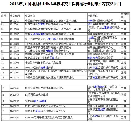 本年度共有20家行業(yè)企業(yè)獨立或與相關(guān)高校聯(lián)合報送了43項評審項目,涉及起重機械、掘進機械、環(huán)衛(wèi)機械、土方機械、路面機械、混凝土及制品機械、搶險救援機械、工業(yè)車輛、配套件等多類產(chǎn)品及關(guān)鍵技術(shù)的應(yīng)用和產(chǎn)業(yè)化,申報項目呈現(xiàn)出創(chuàng)新點多、技術(shù)含量高、社會效益和經(jīng)濟效益顯著等特點。