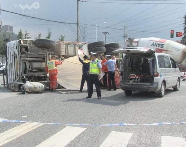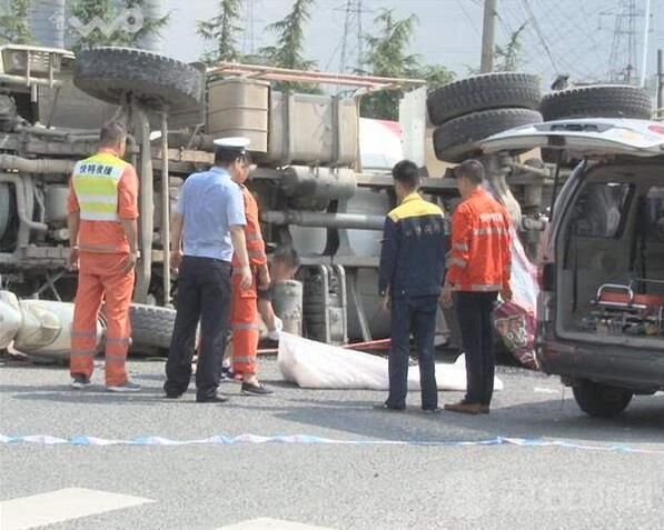 事故發(fā)生之后,南京交警十大隊民警迅速趕到現(xiàn)場,設置路障、保護現(xiàn)場,呼叫救護車過來救助傷者。荔枝新聞通訊員在現(xiàn)場看到,一輛大型水泥攪拌車側翻在紅綠燈路口中間,車頭頂著一輛踏板電瓶車,騎車的男子被攪拌車壓在底下,已經死亡。肇事的水泥攪拌車駕駛員也投案自首。
