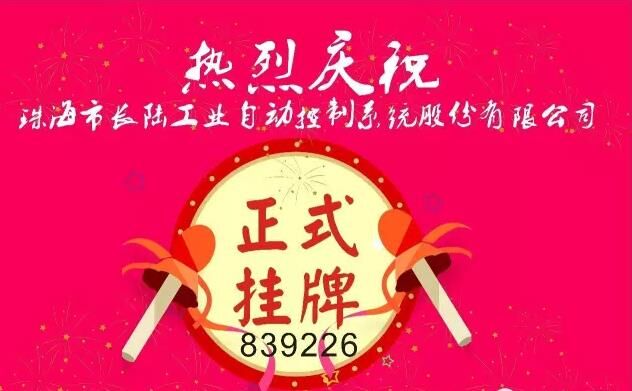9月13日,珠海市長陸工業(yè)自動控制系統(tǒng)股份有限公司在全國中小企業(yè)股份轉(zhuǎn)讓系統(tǒng)(簡稱“新三板”)正式掛牌,證券簡稱為“長陸工控”,證券代碼為“839226”。