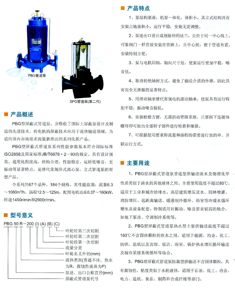 歸屬行業(yè):PBG SPG第二代系列屏蔽式管道泵