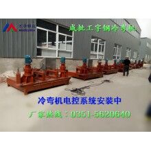 將工字鋼放在冷彎機(jī)上,與減速帶動(dòng)的滾輪接觸后,將壓緊手柄進(jìn)給鎖緊,啟動(dòng)電機(jī)油泵組,由電動(dòng)油泵輸出的高壓溢流閥(可調(diào)整所有壓力),進(jìn)入集成塊到電纜閥,有電液閥和動(dòng)點(diǎn)開關(guān)(點(diǎn)進(jìn),點(diǎn)退)控制油缸工作,工作油缸推進(jìn),將工字鋼與三個(gè)支撐游輪壓緊并為發(fā)生彎曲變形是時(shí)開始計(jì)算,油缸推進(jìn)的長度進(jìn)程為10mm-15mm,開主電機(jī)帶動(dòng)工字鋼工作,反復(fù)操作,達(dá)到所需為止。