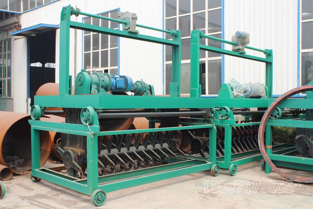 4.智能化自動控制發(fā)酵物料的翻堆過程,在縱向、橫向行走機構(gòu)的作用下,使發(fā)酵物料在池內(nèi)產(chǎn)生一定的翻堆位移,物料在池內(nèi)有規(guī)律的作連續(xù)的等距離漸進(jìn)后移,從而形成了一種連續(xù)的好癢發(fā)酵過程。攪刀不但翻拋均勻、充氧,還具有破碎物料的功能。