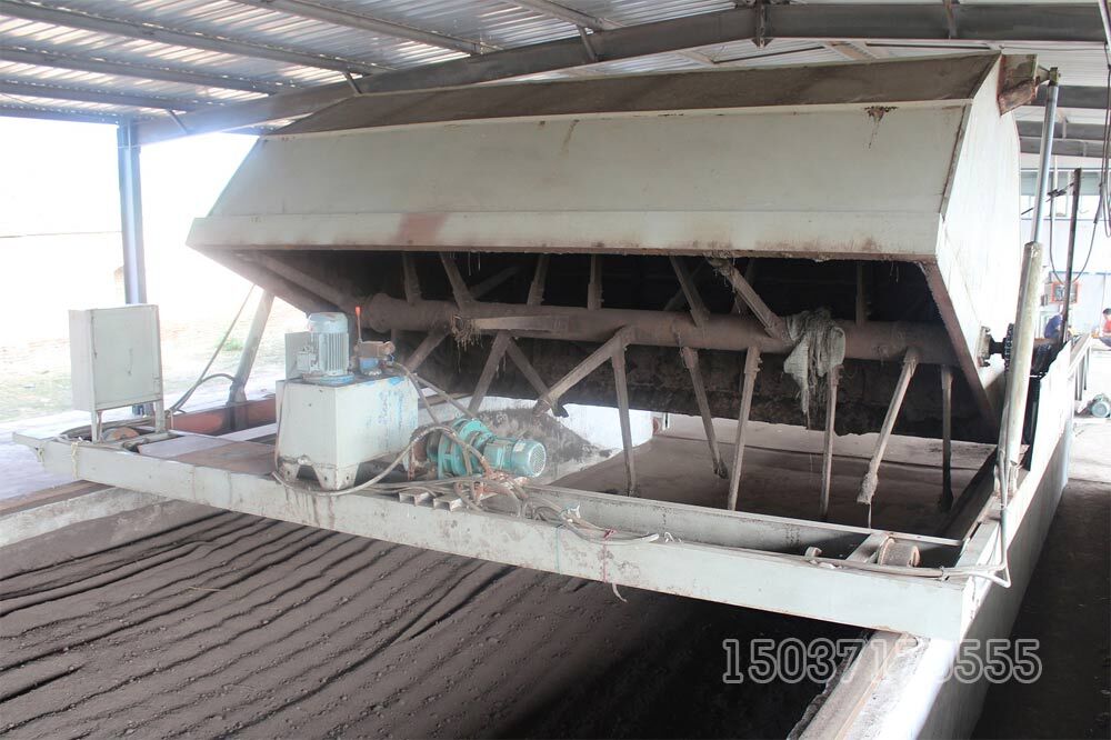 1.槽式翻拋機翻堆跨度可以達(dá)到4-12米,發(fā)酵周期15天左右。發(fā)酵槽長度視情況而定??梢悦刻爝M(jìn)料口投料,另一頭出料。每天投料,每天出料加工。當(dāng)翻拋機翻拋完成需換翻拋段時,可升起攪龍將設(shè)備快速運行至翻拋段。