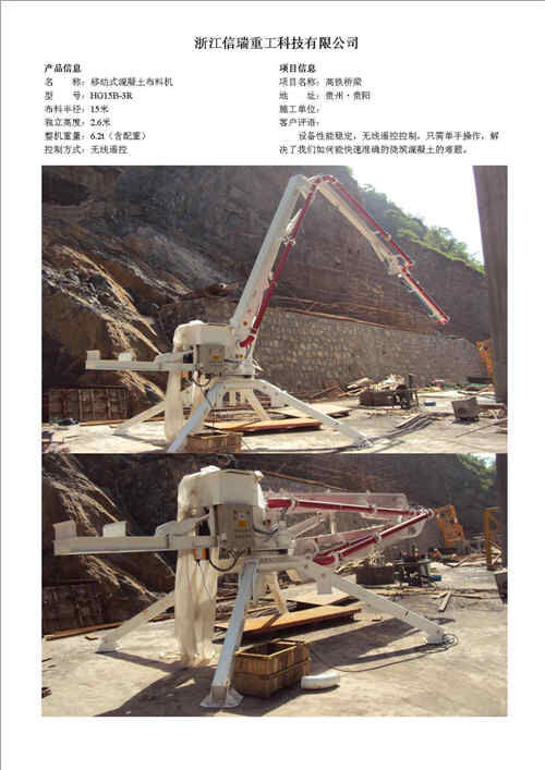 歸屬行業(yè):信瑞重工HG17D-3R車架式混凝土布料機(jī)