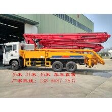 上裝配置:四節(jié)臂垂直高度三十一米,采用高強(qiáng)鋼材料,混凝土輸送缸1600mm,主油泵韓國(guó)川崎200或力士樂(lè)190,50料斗,臂架為紅色,底座為黃色。