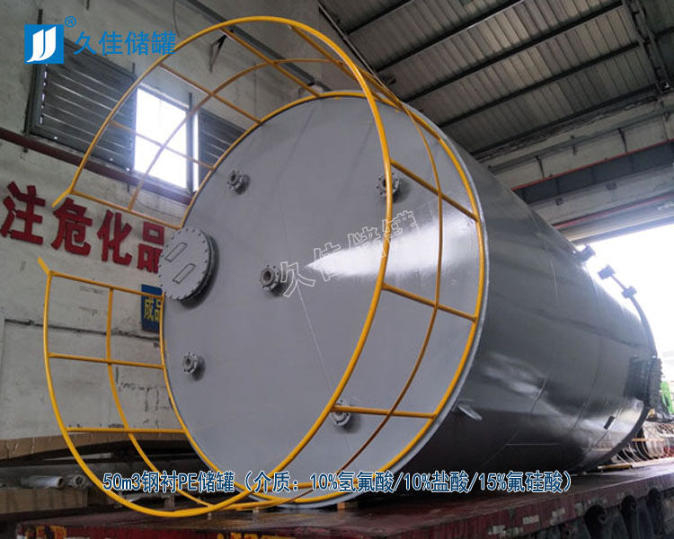 氫氟酸儲(chǔ)罐材質(zhì)  廣東鋼襯PE氫氟酸儲(chǔ)罐廠家 久佳牌 訂制 鋼襯塑酸堿儲(chǔ)存罐特性:鋼襯塑儲(chǔ)罐由于其獨(dú)特的滾塑工藝、產(chǎn)品整體結(jié)構(gòu)和材料優(yōu)異性能,具有整體性好、強(qiáng)度高、無(wú)焊縫、不滲漏、抗沖擊、韌性好、重量輕、壽命長(zhǎng)、耐酸堿、耐有機(jī)溶媒、符合衛(wèi)生標(biāo)準(zhǔn)、價(jià)格低廉、規(guī)格品種多等特點(diǎn)。尤其耐腐蝕、長(zhǎng)壽命和大規(guī)格品種有非常大的優(yōu)勢(shì),是貯存和運(yùn)輸各類化工液體半固體的理想產(chǎn)品。其性能大大超過(guò)了傳統(tǒng)的玻璃鋼、陶瓷、橡膠、焊接塑料等材料制作的防腐儲(chǔ)罐。已成為傳統(tǒng)防腐儲(chǔ)罐的升級(jí)換代產(chǎn)品,逐漸成為防腐儲(chǔ)罐的首選產(chǎn)品。