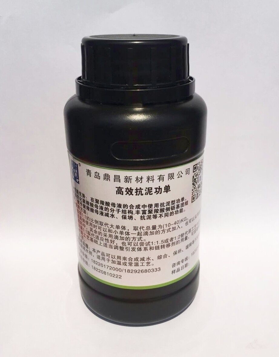高效抗泥功單是青島鼎昌新材料有限公司獨立研發(fā)的一種應(yīng)用于聚羧酸母液合成的功能性單體。該產(chǎn)品是基于分子設(shè)計的理念,利用有機合成的技術(shù)合成的一種可用于自由基聚合的不飽和單體。它的分子結(jié)構(gòu)既不同于不飽和醇聚氧乙烯醚(大單體),又不同于丙烯酸、丙烯酸羥乙酯、甲基烯丙基磺酸鈉等小單體,它可以吸附在膠凝材料顆粒表面,起到“錨固”作用,也可以起到空間位阻的作用。xhudli$&159*
