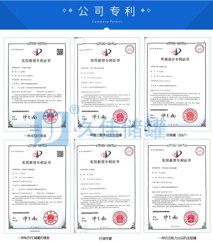 2、東莞久佳出品的塑料儲(chǔ)罐的材質(zhì)為滾塑專用料——線性低密度聚乙烯(LLDPE)或線性中密度聚乙烯(LMDPE)。它可以盛裝常溫下的無機(jī)酸、堿、鹽大部份物質(zhì)及許多有機(jī)物;