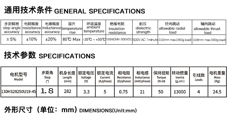 兩相1.8°混合式步進(jìn)電機(jī)130系列步進(jìn)電機(jī)