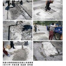 如果用普通水泥混凝土養(yǎng)護周期再少得一周,公路是重要的交通樞紐,不可能封路那么久。在反復對比分析下,四川阿壩自治州公路局決定采用一種新型材料—搶修寶快速修補料修復病害。這種快速搶修水泥在保證質量的同時,可以快速通車。30分鐘凝固,2-4小時通行,2小時強度可達到C30,施工工藝簡單,好掌握,修補效果好,已經在全國范圍內獲得了廣泛的運用。