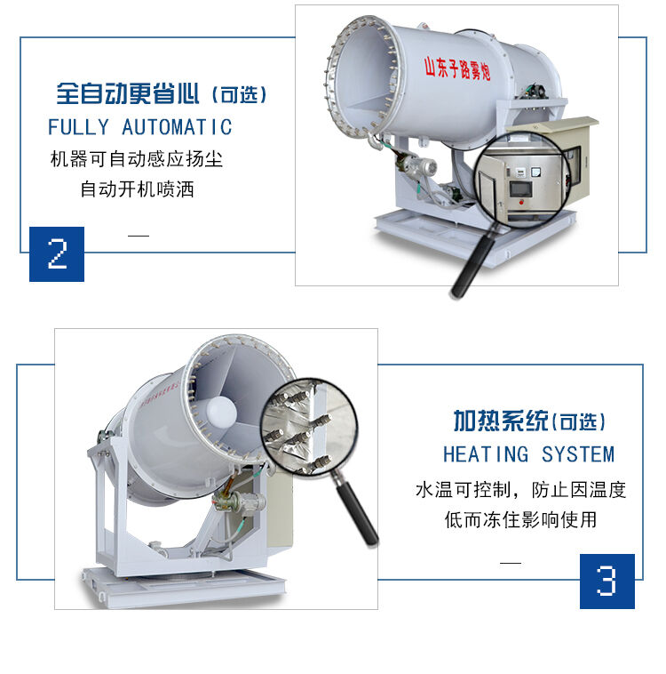 隨著技術(shù)的發(fā)展,除塵霧炮機也不斷的更新?lián)Q代。由于具有良好的除塵效果,噴霧霧炮機成為現(xiàn)在應用廣泛的除塵設備。除塵霧炮機是將水通過高壓泵進行加壓,加壓后的高壓水流經(jīng)過高壓霧化不銹鋼噴嘴將水霧化成直徑約10~200微米的水霧,