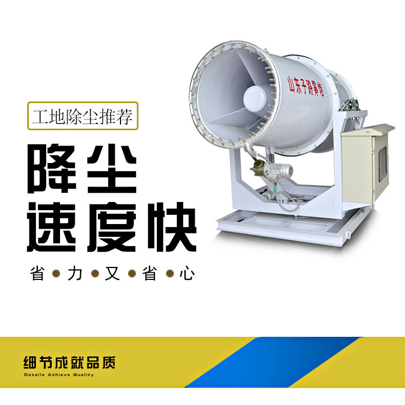 子路環(huán)保科技有限公司一款通過高壓風(fēng)機(jī)將儲存的水壓縮成灰塵大小,在利用不銹鋼噴嘴部位將水霧化吹向高空凈化空氣的一種新型環(huán)保除塵產(chǎn)品。這款產(chǎn)品名字叫高射程霧炮機(jī),
