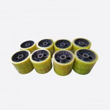 首頁 > 產(chǎn)品 » 配件 » 攪拌站配件 » 滾筒350混凝土攪拌機(jī)聚氨酯膠輪 黃色掛膠托輪滾輪 摩擦輪