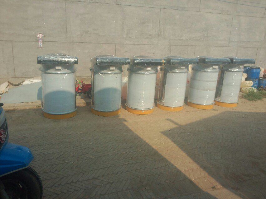 單機(jī) 屬于機(jī)械抖動(dòng)除塵器,其基本結(jié)構(gòu)由風(fēng)機(jī)、過(guò)濾器和集塵器三個(gè)部分組成,各部件都安裝在一個(gè)立式框架內(nèi),鋼板殼體,烘漆防銹,運(yùn)行可靠,使用方便。風(fēng)機(jī)采用離心風(fēng)機(jī),風(fēng)量大,風(fēng)壓高,并采用消聲措施,噪音小。過(guò)濾器采用扁布袋組,每個(gè)布袋內(nèi)裝有彈簧鋼絲網(wǎng),過(guò)濾效果好。清灰機(jī)構(gòu)采用電動(dòng)機(jī)帶動(dòng)偏心輪、連桿使布袋抖動(dòng)而   沾在濾袋表面的粉塵。此除塵器設(shè)有檢修門,方便檢修和換袋。