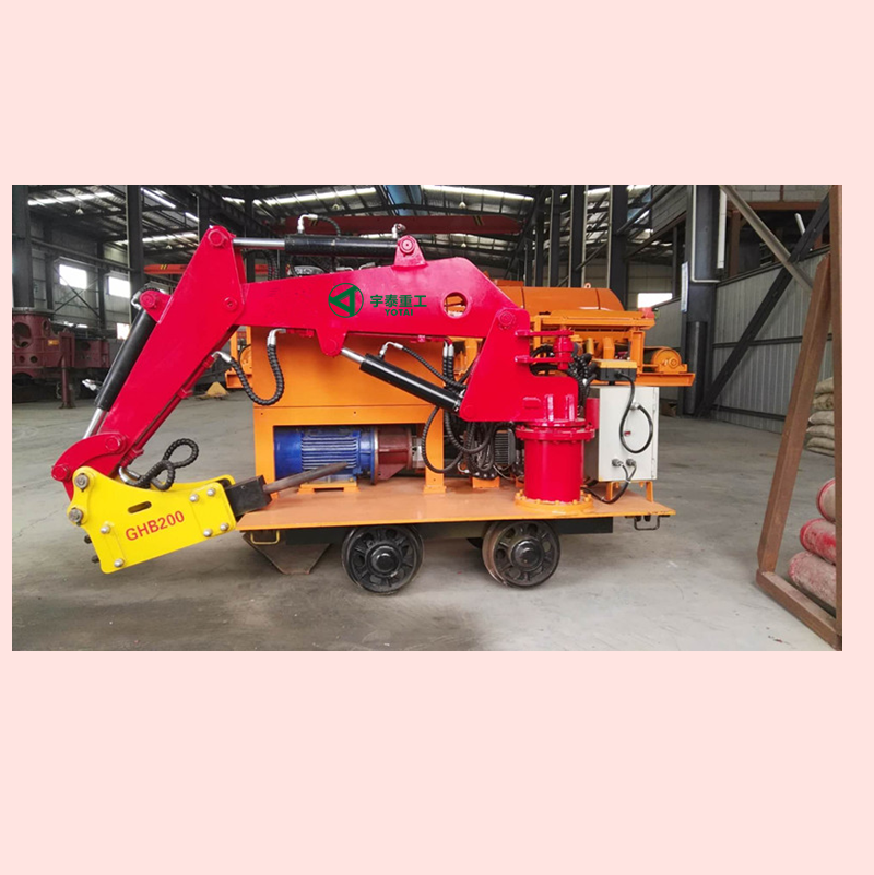湖南宇泰重工生產(chǎn)的大石破碎機(jī)是集成行走滾輪、動(dòng)力裝置、控制柜、機(jī)械臂和液壓破碎錘的機(jī)、電、液三合一的機(jī)械設(shè)備,主要應(yīng)用于礦山井下大石的破碎。該機(jī)能處理邊長(zhǎng)1000毫米以下物料,其抗壓強(qiáng)度最高可達(dá)160兆帕。具有破碎比大,破碎后物料呈立方體顆粒等優(yōu)點(diǎn)。