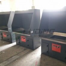 2、該打磨除塵工作臺(tái)采用我公司自己的收吸式除塵方式,且在后部抽風(fēng)口和臺(tái)面抽風(fēng)口都安裝有風(fēng)閥??梢愿鶕?jù)工件的大小或打磨位置的不同關(guān)閉相應(yīng)的風(fēng)閥.以提高其它部位的風(fēng)量來達(dá)到提高除塵效果。該種方式很大地節(jié)省了用風(fēng)量.降低了運(yùn)行費(fèi)用。