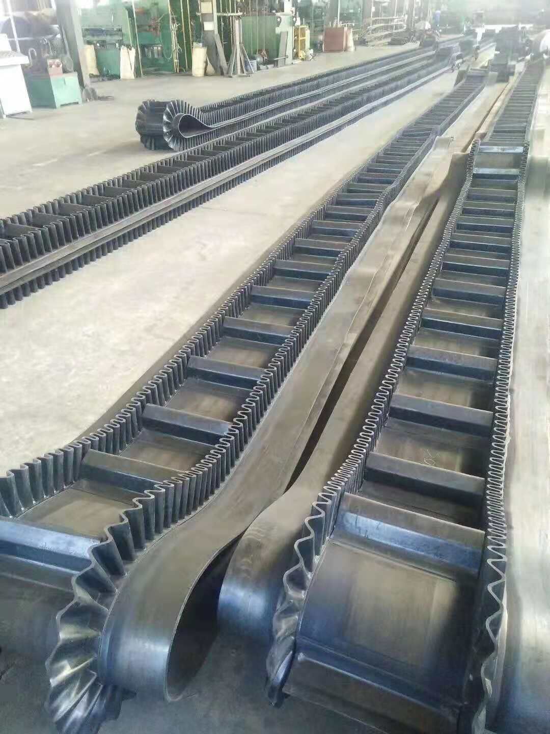 遼寧擋邊輸送帶廠家,波狀擋邊輸送帶由基帶、擋邊、橫隔板3部分組成。擋邊起防止物料測(cè)滑撒落的作用。為便于繞過滾筒,檔邊設(shè)計(jì)成波紋狀;波狀擋邊輸送帶橫隔板的作用是承托物料,為了實(shí)現(xiàn)大傾角輸送,采用T型TC型。波狀擋邊輸送帶檔邊和橫隔板是用二次硫化的方法與基帶連接的,具有很高的連接強(qiáng)度 .一、產(chǎn)品特點(diǎn)(普通型大傾角波狀擋邊輸送帶):