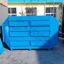 公司小風(fēng)量的廢氣凈化塔由抽屜式組成,大量風(fēng)吸附塔由上箱體、下支架、工作爬梯、平臺(tái)護(hù)欄和卸料裝置四部分組成。