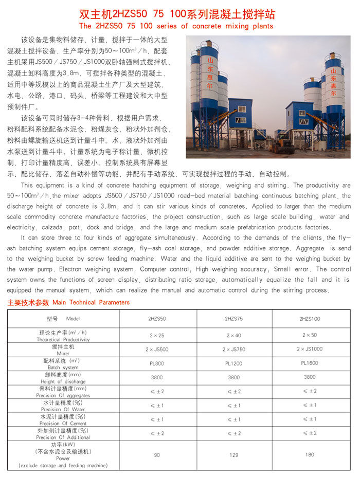 歸屬行業(yè):雙主機(jī)2HZS75混凝土攪拌站