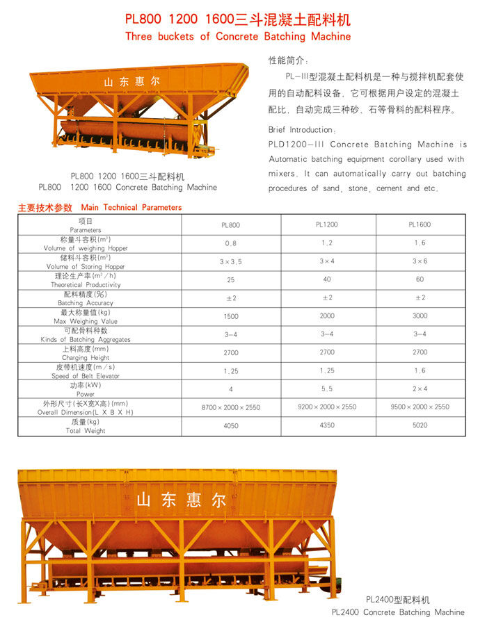歸屬行業(yè):PL800三斗混凝土配料機(jī)