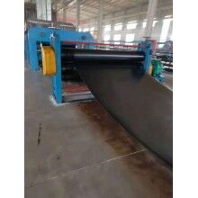 防撕裂鋼絲繩芯橡膠輸送帶該輸送帶在鋼絲繩芯上面(或上下)設(shè)置了橫向均勻排列的高延伸鋼絲繩或高強(qiáng)力高延伸化纖線繩作為抗撕裂層,抗撕裂層垂直于輸送帶運行方向。當(dāng)輸送帶輸送硬質(zhì)尖銳物料時,抗撕裂層可阻擋尖銳硬物刺穿,一旦刺穿后還可產(chǎn)生足夠抵抗尖銳硬物撕裂膠帶的阻力,從而有效防止輸送帶撕裂現(xiàn)象發(fā)生.