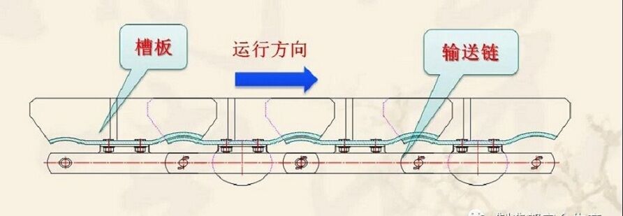 由:1、槽板2、鏈節(jié)等件組成,槽板為雙圓弧搭接式,采用低合金鋼板組焊而成,強度高,耐磨損不漏料。