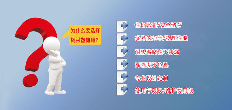 鋼襯塑儲罐由于其獨特的滾塑工藝、產(chǎn)品整體結(jié)構(gòu)和材料優(yōu)異性能,具有整體性好、強度高、無焊縫、不滲漏、抗沖擊、韌性好、重量輕、壽命長、耐酸堿、耐有機溶媒、符合衛(wèi)生標準、價格低廉、規(guī)格品種多等特點。尤其耐腐蝕、長壽命和大規(guī)格品種有非常大的優(yōu)勢,是貯存和運輸各類化工液體半固體的理想產(chǎn)品。其性能大大超過了傳統(tǒng)的玻璃鋼、陶瓷、橡膠、焊接塑料等材料制作的防腐儲罐。