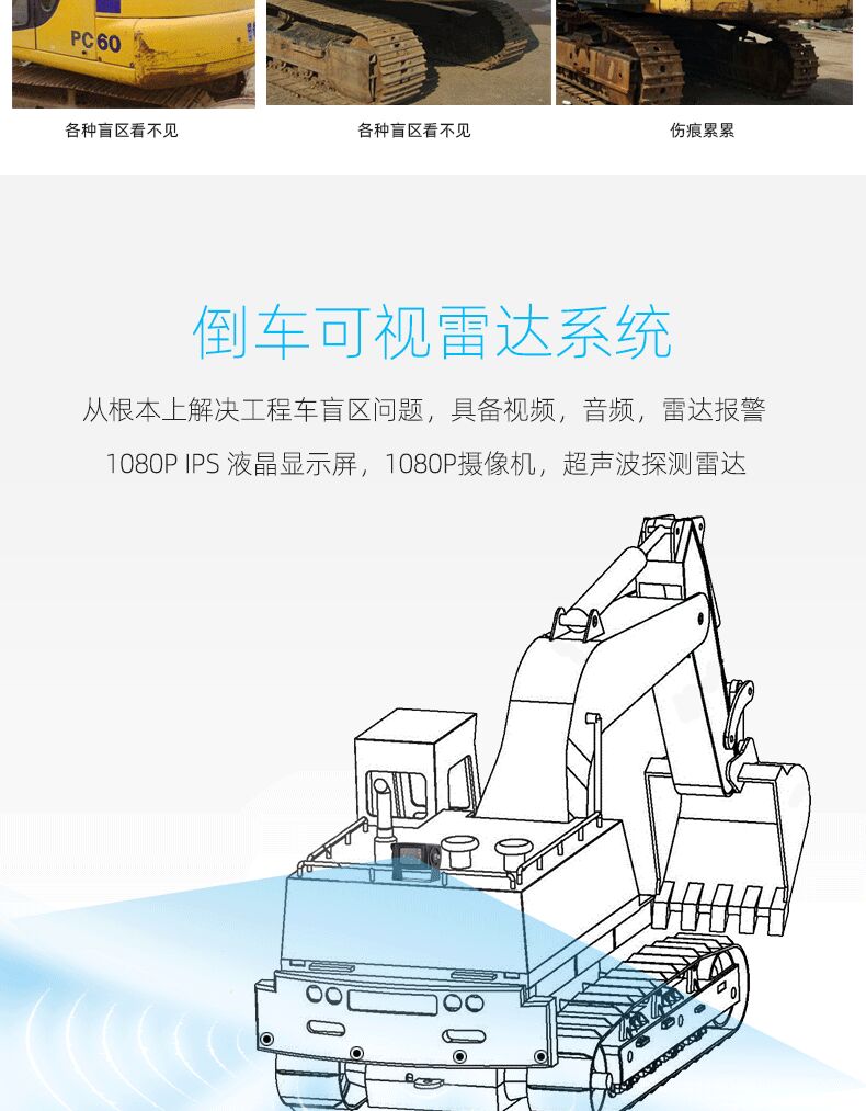 挖掘機(jī)倒車?yán)走_(dá) 高清夜視紅外影像報(bào)警提示系統(tǒng)