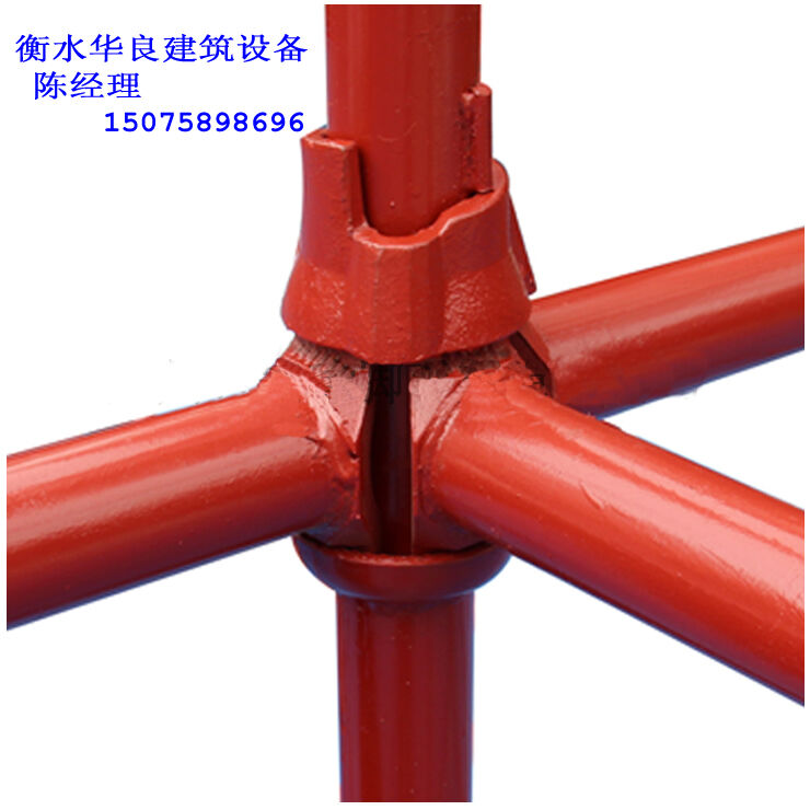 碗扣腳手架獨(dú)特的結(jié)點(diǎn)設(shè)計(jì),雖仍應(yīng)歸為鉸接,但卻能夠承受相對(duì)更大的荷載,再加上其立桿上的上碗和橫桿上的插片均為鍛鋼的工藝,使這款碗扣腳手架系統(tǒng),在國外被廣泛地應(yīng)用于化工廠、煉油廠、油田以及大型船艦維修等荷載相對(duì)較高的領(lǐng)域??紤]到系統(tǒng)的穩(wěn)定性,安裝斜桿是必須的。為了補(bǔ)足這個(gè)弱項(xiàng),該系統(tǒng)特意設(shè)計(jì)了另外一類斜桿,在斜桿的兩頭,均用高強(qiáng)度螺栓,各固定半個(gè)旋轉(zhuǎn)扣件,扣件亦采用鍛鋼工藝。這樣,盡管斜桿無法直接在碗扣的結(jié)點(diǎn)扣接,但可以用扣件扣接在橫桿或立桿的適當(dāng)位置上,也大大地改善了系統(tǒng)的穩(wěn)定性。