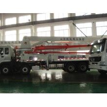 鐵力士牌HDT5420THB-52/5型混凝土泵車是山東鴻達(dá)建工集團(tuán)有限公司在中國(guó)重汽集團(tuán)濟(jì)南卡車股份有限公司同期申報(bào)的豪濼牌ZZ5437N5067C1型泵車底盤(pán)基礎(chǔ)上,加裝混凝土泵等專用設(shè)施開(kāi)發(fā)、研制的。該車屬N3類柴油車,發(fā)動(dòng)機(jī)布置方式為縱置,車輛驅(qū)動(dòng)型式為8×4,前置后驅(qū)動(dòng)。