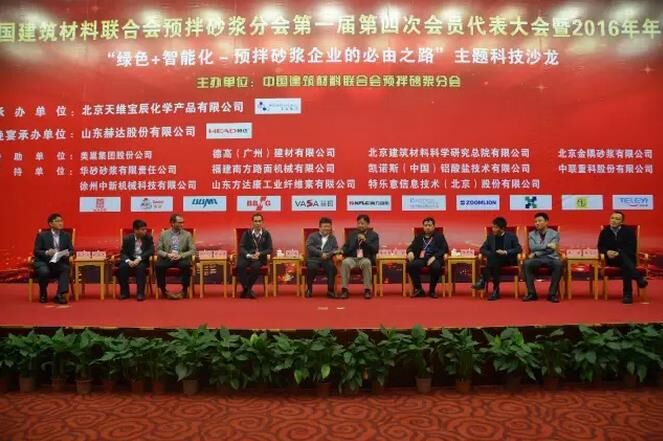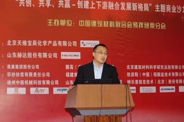 隨后的企業(yè)家?guī)p峰論壇環(huán)節(jié)壇由北京天維寶辰化學(xué)產(chǎn)品有限公司江蘇分公司總經(jīng)理金帥主持。北京金隅砂漿有限公司總經(jīng)理蔡魯宏、北京敬業(yè)達(dá)新型建筑材料有限公司董事長(zhǎng)張新、特樂意信息技術(shù)(北京)股份有限公司董事長(zhǎng)張宏宇、浙江益森科技股份有限公司總經(jīng)理祝張法、福建南方路面機(jī)械有限公司市場(chǎng)總監(jiān)周煒、華砂砂漿有限責(zé)任公司市場(chǎng)總監(jiān)王曉峰、三一重工股份有限公司A8運(yùn)營(yíng)支持項(xiàng)目部總經(jīng)理段鵬、華菱星馬汽車(集團(tuán))股份有限公司專用車研究所所長(zhǎng)裴志軍向所有參會(huì)來賓共同分享了在更加透明、開放和公平的市場(chǎng)環(huán)境下,各家企業(yè)應(yīng)如何彼此聯(lián)手,用共同創(chuàng)造、共同分享的精神,尋求未來合作共贏的機(jī)會(huì)。