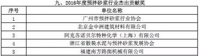 附:2016年度預(yù)拌砂漿行業(yè)表彰評(píng)比名單