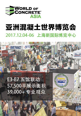 首屆亞洲混凝土世界博覽會(huì),暨上海國(guó)際混凝土、地坪、砂漿及運(yùn)動(dòng)場(chǎng)地展覽會(huì),將于 2017 年12 月 4 至 6 日于上海新國(guó)際博覽中心舉行。