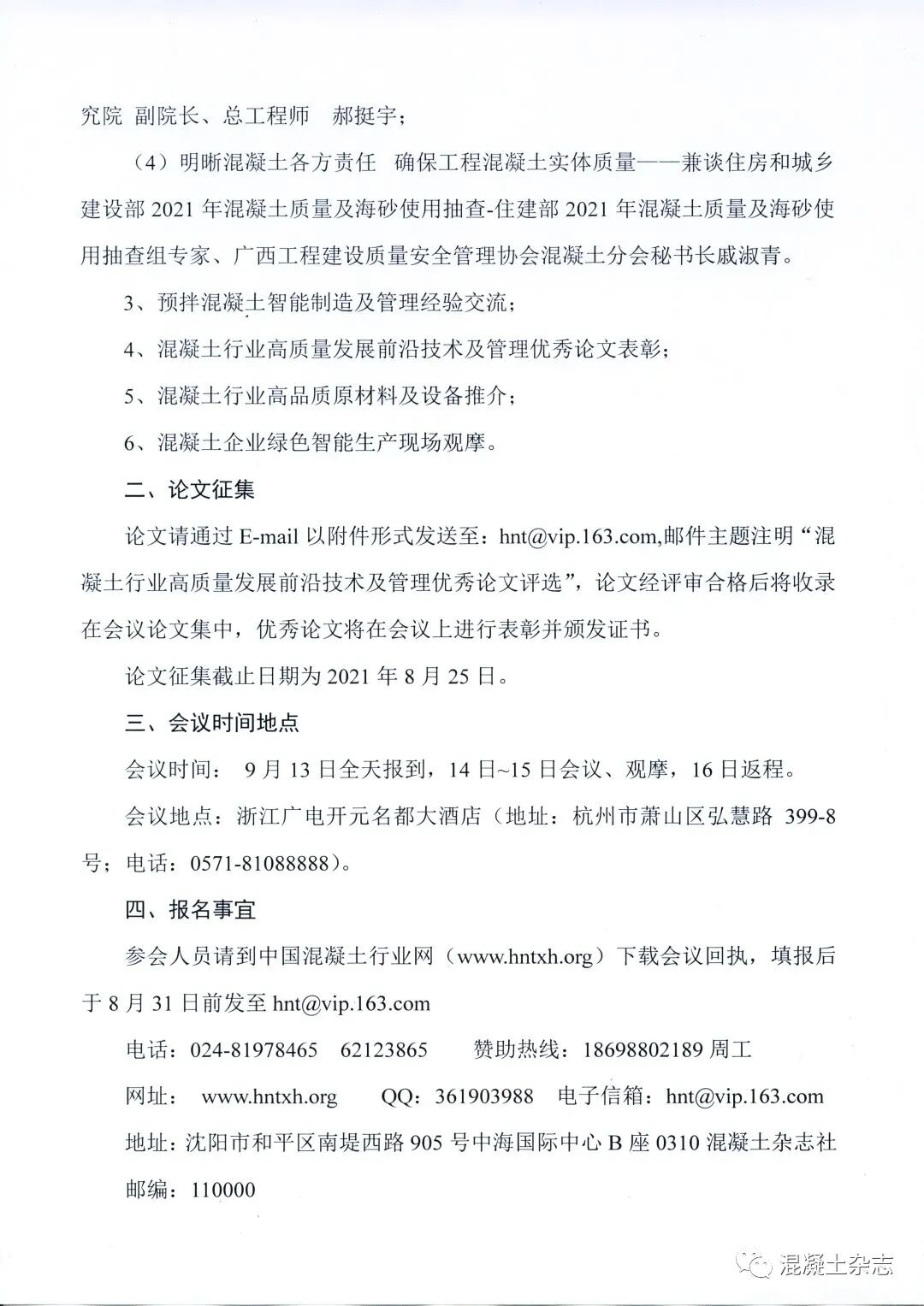 論文請通過E-mail以附件形式發(fā)送至:hnt@vip.163.com,郵件主題注明“混凝土行業(yè)高質量發(fā)展前沿技術及管理優(yōu)秀論文評選”,論文經評審合格后將收錄在會議論文集中,優(yōu)秀論文將在會議上進行表彰并頒發(fā)證書。